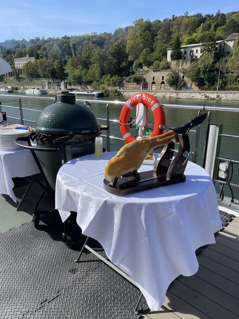 My adventure began on the upper deck, where I found myself enveloped in an atmosphere of serenity. The unspoiled, picturesque landscapes passing by were a sight to behold, and I knew these were moments I would carry with me always. Our adventure began with a warm and inviting welcome barbecue, but this was no ordinary barbecue; it was a culinary delight that transported my taste buds to the heart of France.